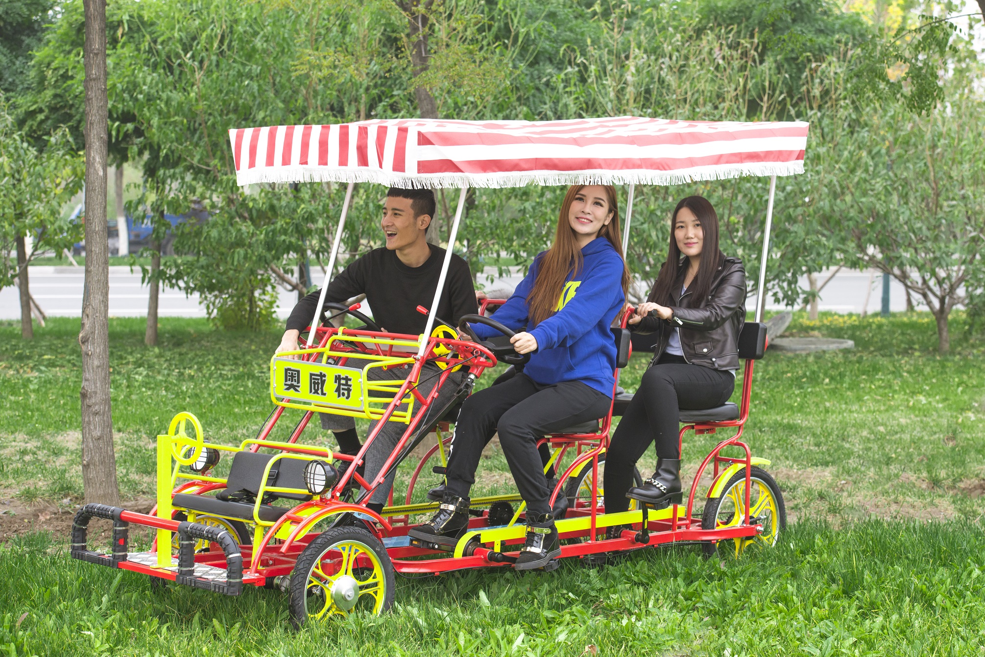 Aowite one-wheel four-wheel double-row bicycle four-wheel sightseeing car New four-person double bicycle