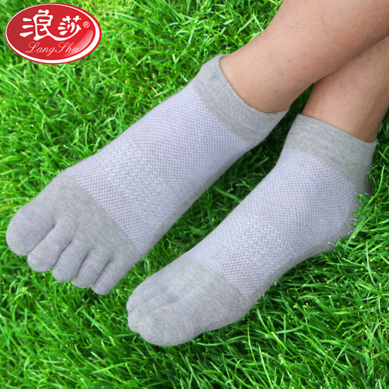Five-finger socks pure cotton summer thin mid-tube socks deodorant Langsha men's socks breathable mesh socks five-toe socks men