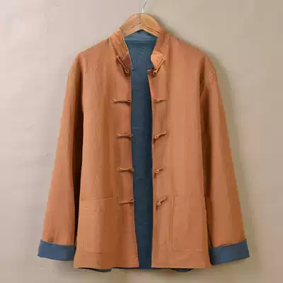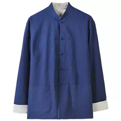 Flax Tang jacket men's spring and autumn Chinese style buckle Chinese style double two sides wear cashwear clothing for middle-aged and elderly father