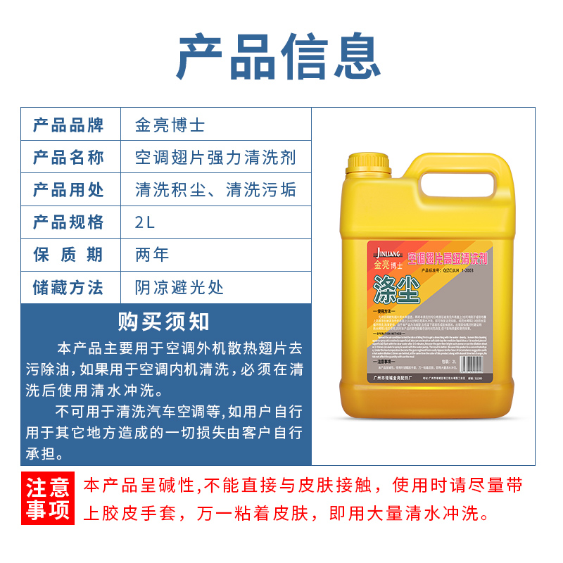 Air conditioning external machine household cleaning agent dust fin radiator oil cleaning dust removal condenser descaling 2L