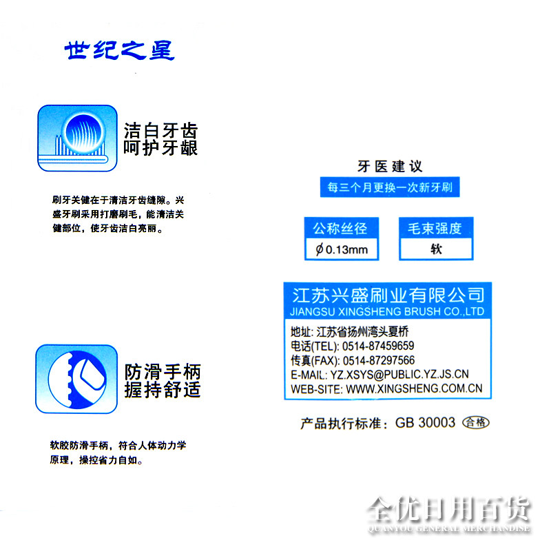 (Authorized by the manufacturer) Xingsheng 775A Century Star Mouthguard Soft Bristle Adult Toothbrush National