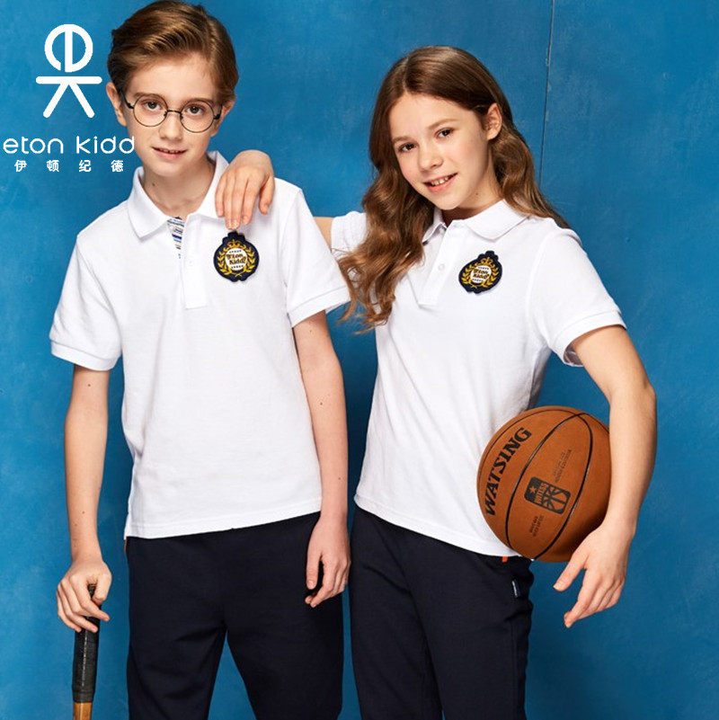 Eaton Guild Summer school uniforms boy girl short sleeve T-shirt primary school student white sport POLO shirt 09T122-Taobao