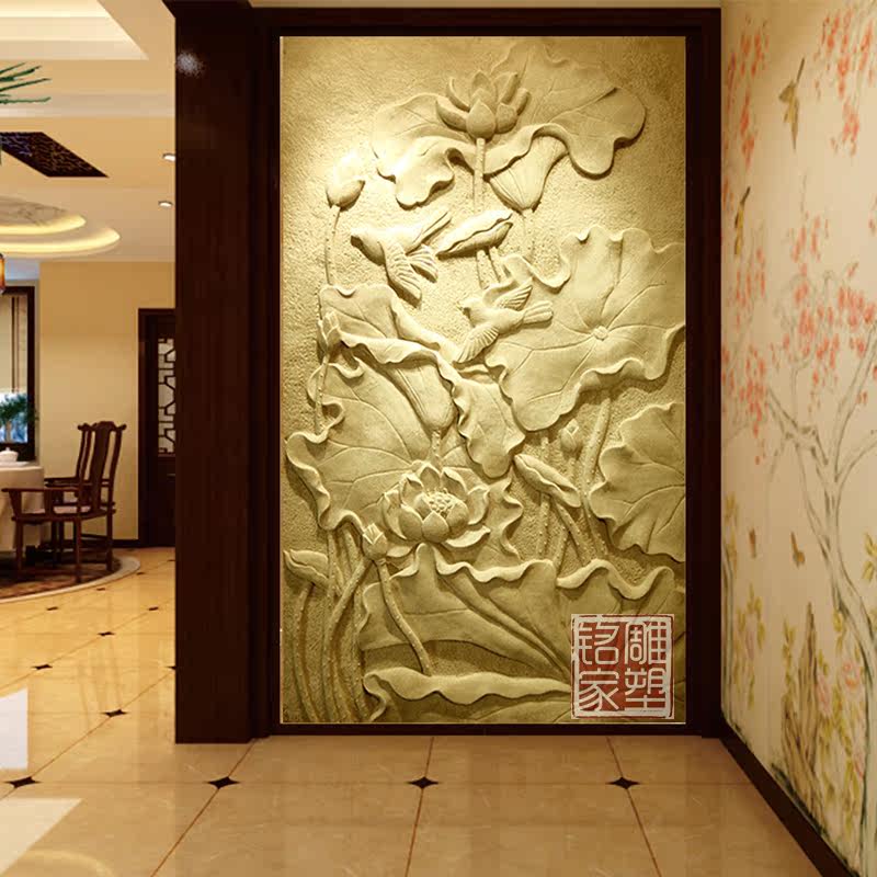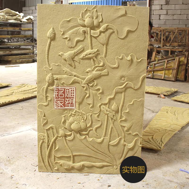 Villa sandstone fiberglass background wall Custom sandstone relief Indoor outdoor wall decoration Wall hanging lotus wall decoration
