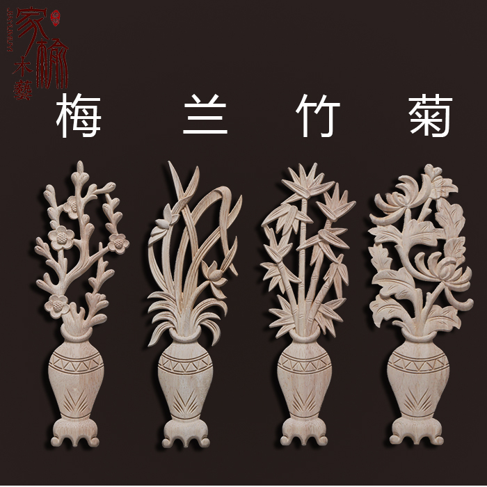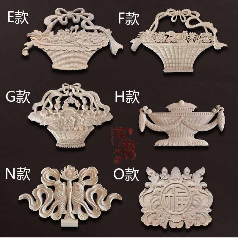 East Yangwood Carved Corner Flower European-style Applique with Wheat Ears Wood Flower Door Flower Bouquet Finely Carved Solid Wood Applique