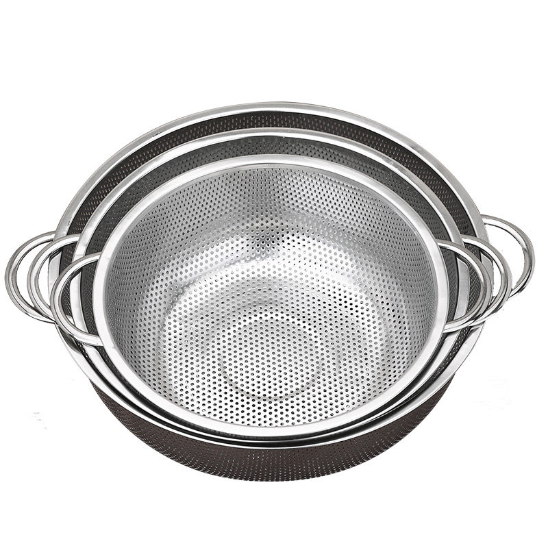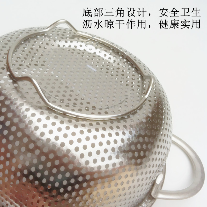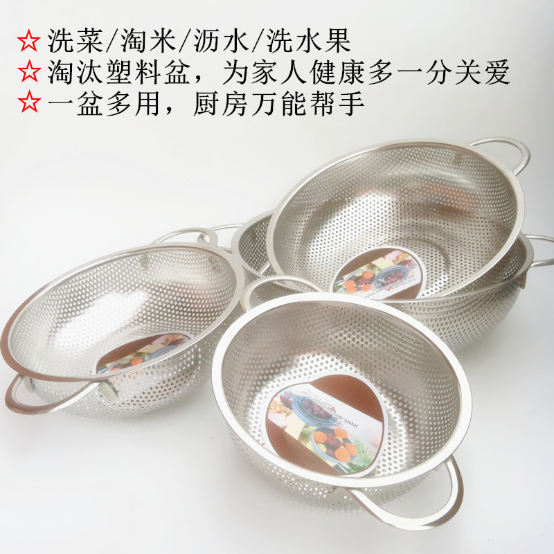 Stainless Steel Wash Basin Thickened Rice Sieve Kitchen Multipurpose Drain Leaking Basin Double Ear Water Fruit Basket Naughty Basket Leaking Basin