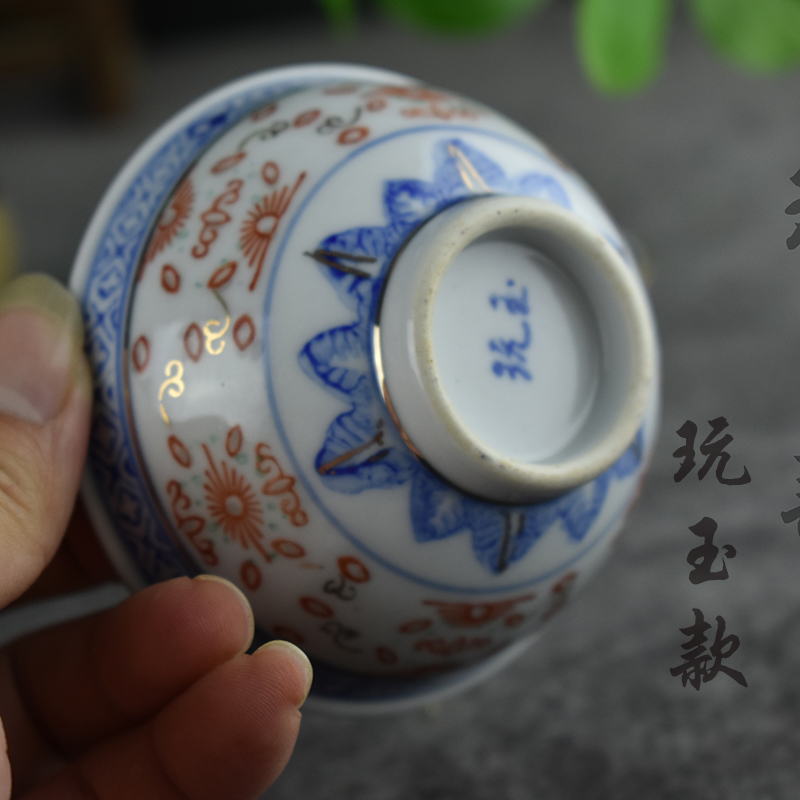 Jingdezhen factory goods to play jade-style green flower Lingang tea sketching gold tea cup Lingang tea bowl imitation ancient tea tea Exquisite Porcelain-Taobao
