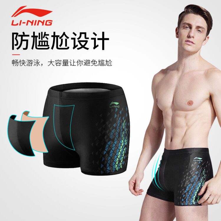 Li Ning Swim Pants Men's Quarter Speed Dry Hot Spring New Swim Pants Men's Professional Training Large Size Swimsuit Swimwear
