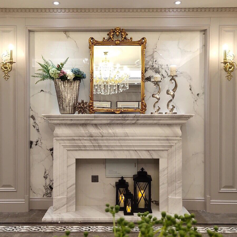 European Mirror Home French Retro Fireplace Mirror Living Room Wall Carved Porch Mirror European Baroque Dressing Mirror Decoration