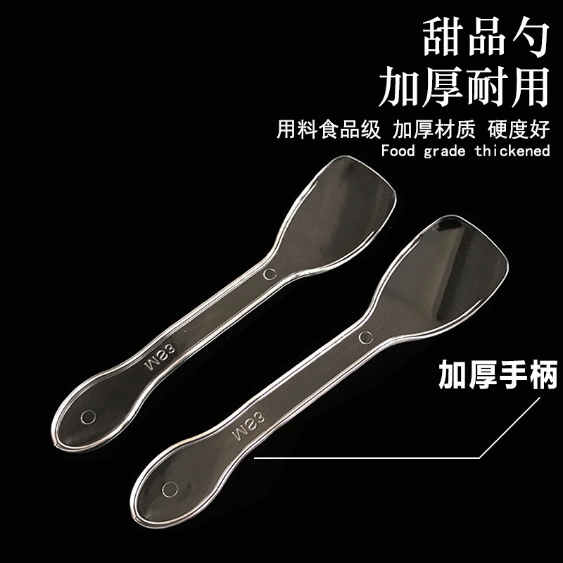 Transparent plastic spoon disposable thick ice cream spoon 10cm cake pudding ice cream spoon small dessert tasting