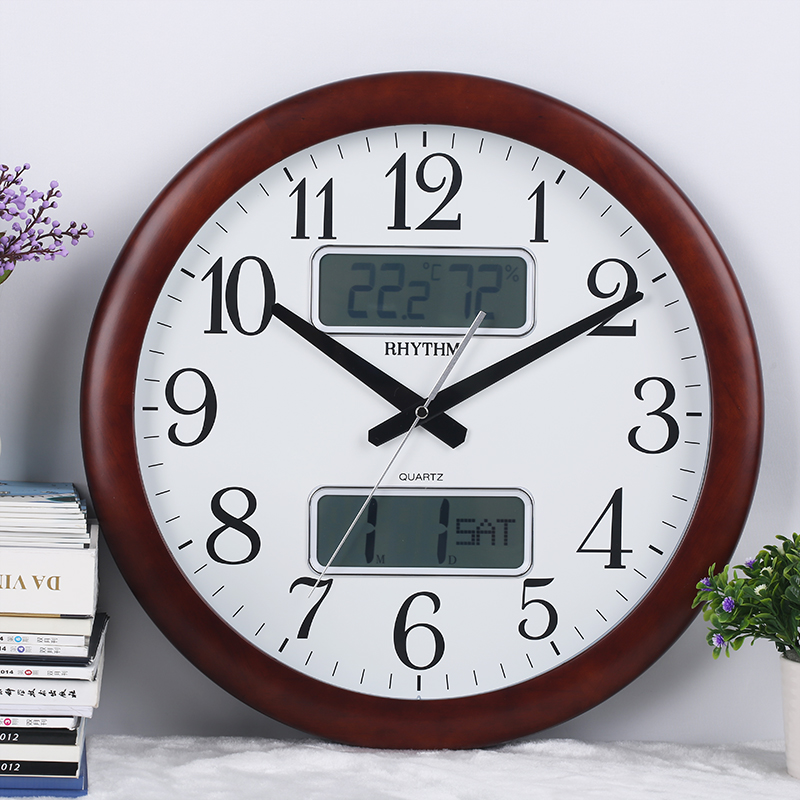RHYTHM Lionic Japan Import Hanging Bell 16 Inch Office Living Room Clock Upscale Solid Wood Silent Quartz Clock