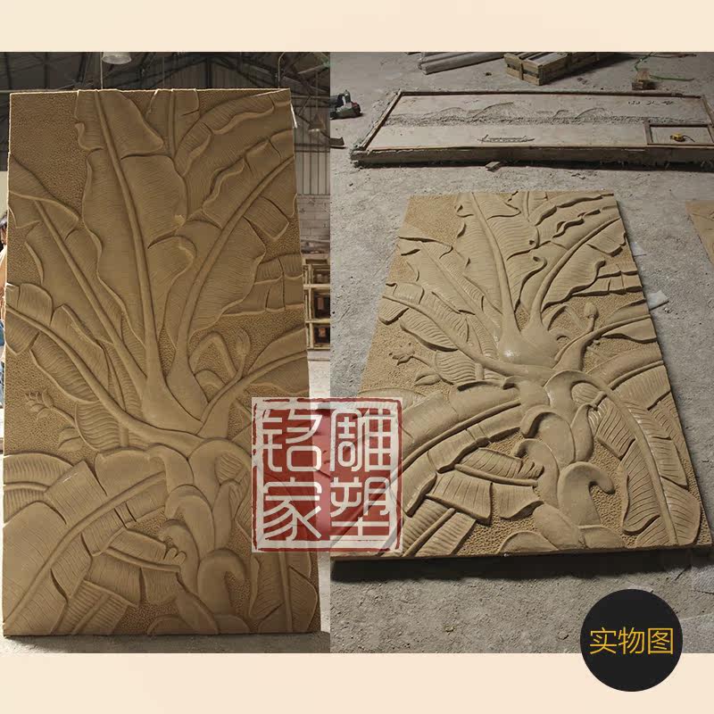Resin glass fiber imitation copper sandstone relief Banana leaf relief Southeast Asian style relief Party Building relief