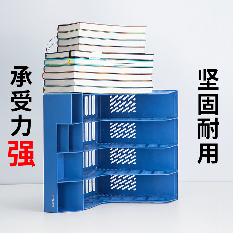 Deli Triple Quad File Frame Information Rack Desktop Storage Shelf Basket Three or Four Columns Thick deli File Rack Information Box Storage Box Classification Rack With Pen Holder Office Supplies