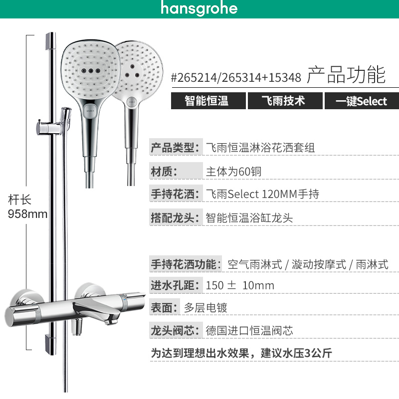 Modern round shower head thermostatic bathtub tap modern square shower head thermostatic bath head round plated chrome handheld shower head thermostatic bathtub tap (Sagan signature version)