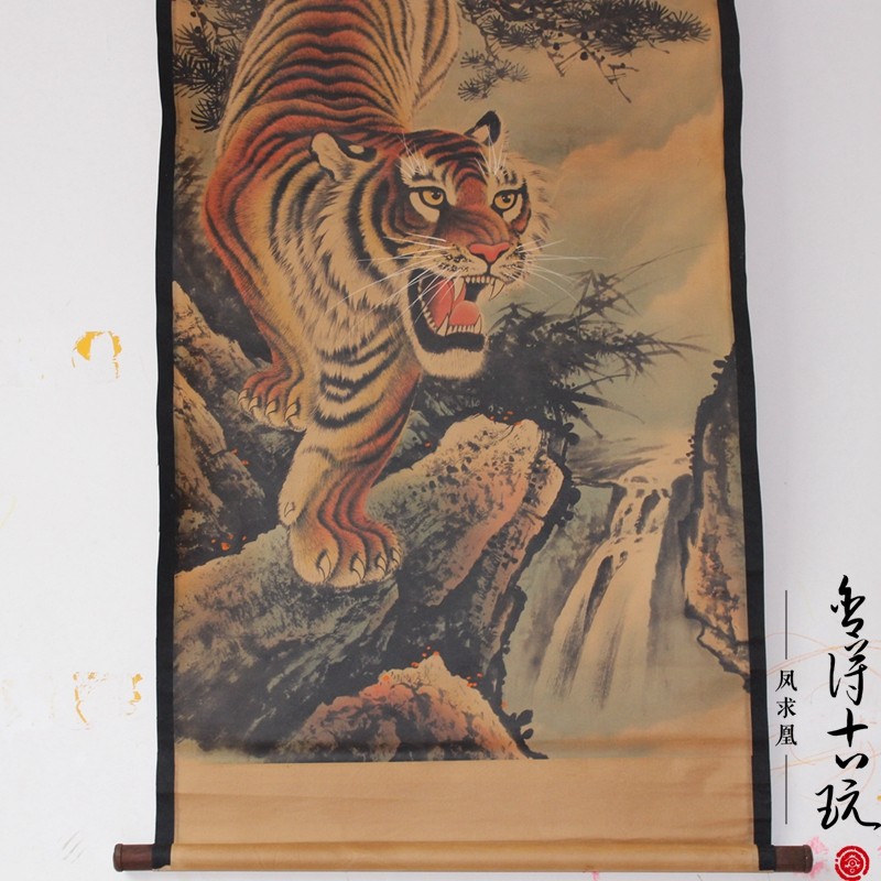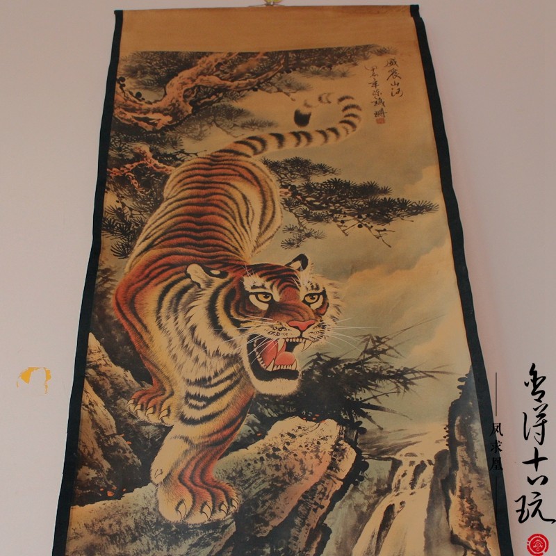 Shede calligraphy and painting Antique Chinese painting Landscape painting Middle hall painting Office living room decoration painting Mounted tiger down the mountain