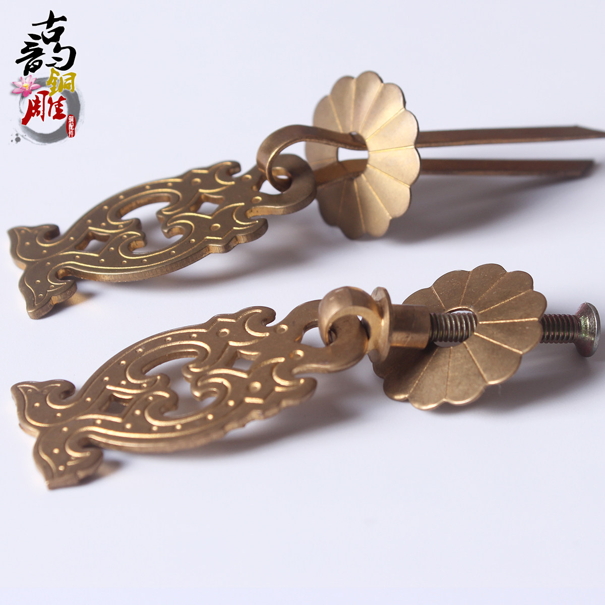 brass handle all-copper double-dragon handle drawer overall cupboard door handle Chinese imitation antique furniture hanger hardware bronze