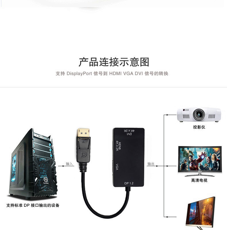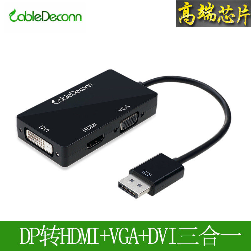 DisplayPort to HDMI DVI VGA rectangular three-in-one converter DP interface computer adapter cable