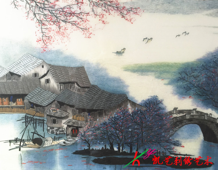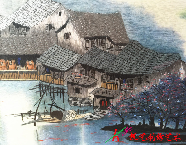 Suzhou Embroidery Hanging Paintings Handmade Embroidery Boutique Water Village Hanging Paintings Living Room Study Hanging Paintings Water Village Hanging Paintings Porch Hanging Paintings