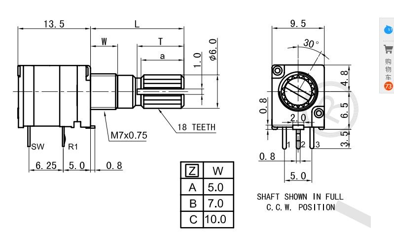 Xianke and other singing machines use 09 type 10K B10K B103 switch potentiometer shaft length 15mm with switch