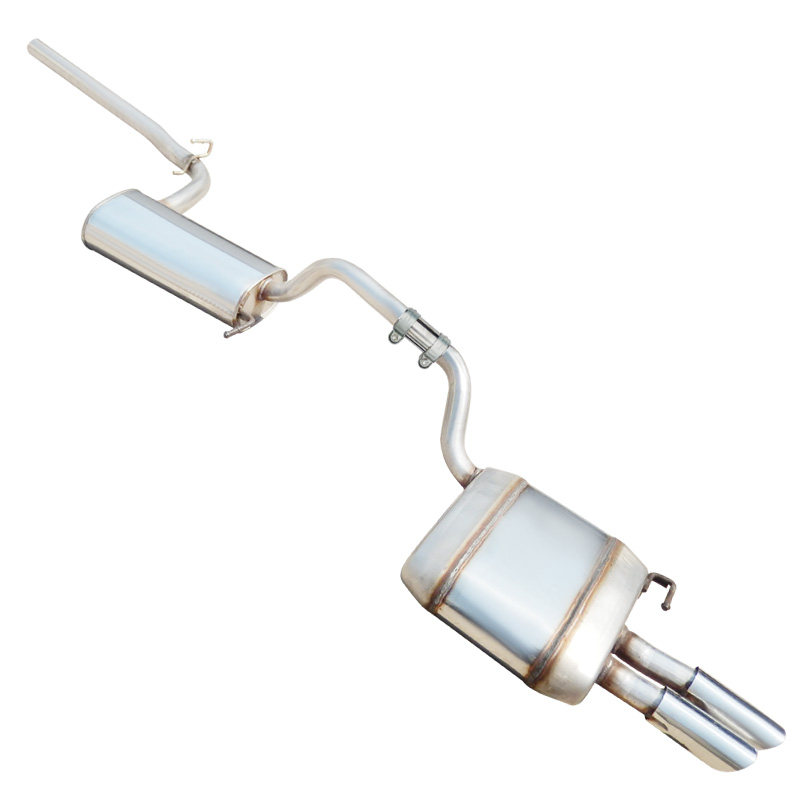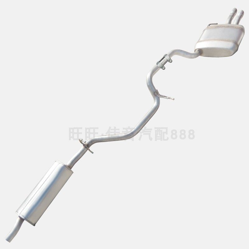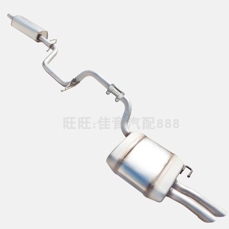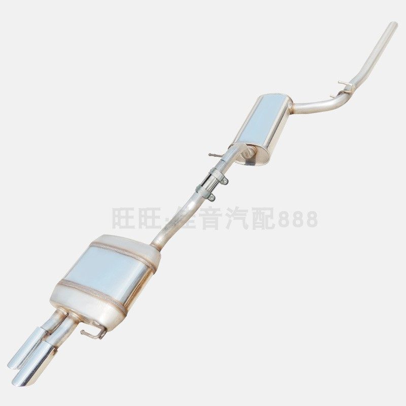 The rear section stainless steel muffler in the exhaust pipe of the new Passat car is split and the rear axle is thickened and silent