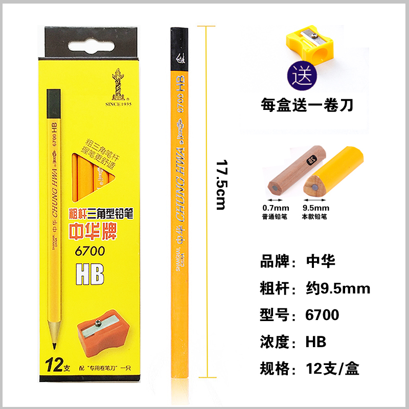 Chinese Pencil Thick Triangle 6700 Children's Writing Correction HB Pencil Students Pencil 0668 Pencil sharpener Pencil Planer