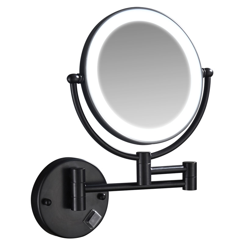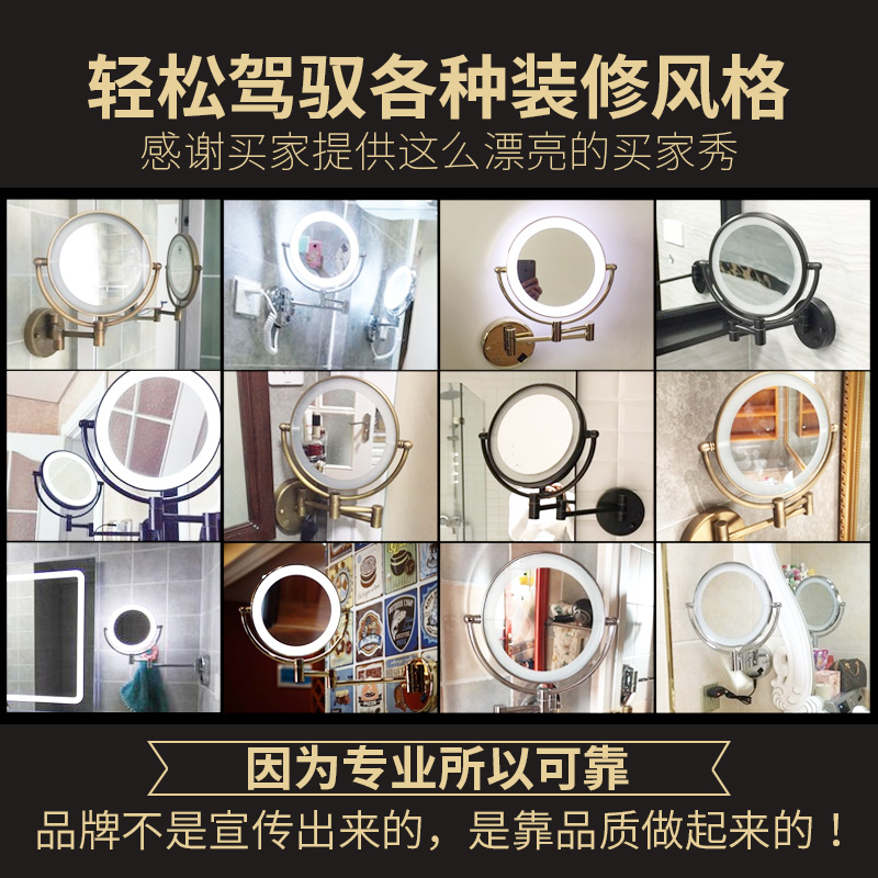 LED makeup mirror Hole-free folding mirror Bathroom telescopic beauty mirror Hotel powder room wall-mounted double-sided mirror with light