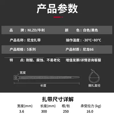 Nylon cable tie Plastic buckle Self-locking 5x300 cable management lashing belt buckle Strong cable tie Black cable tie