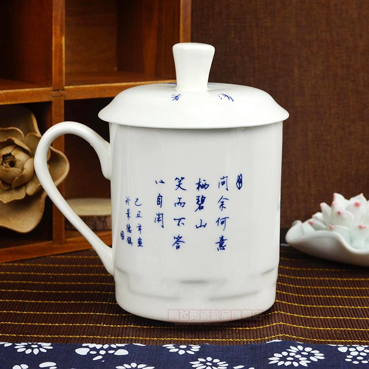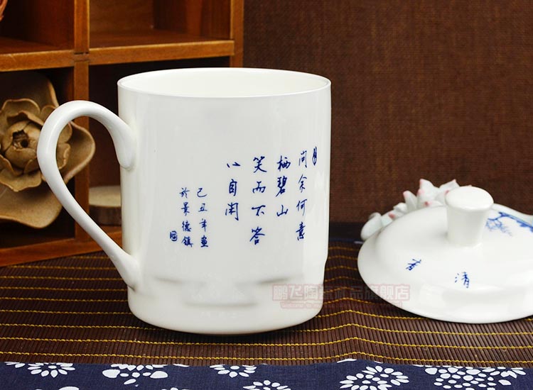 Jingdezhen bone china teacup men's and women's teacup ceramic cup with lid large water cup office tea cup meeting cup