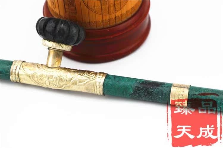 High-grade all-jade Xiuyu stone big cigarette gun old cigarette rod Silver-plated inlaid Malay jade cigarette rod Film and television props collection