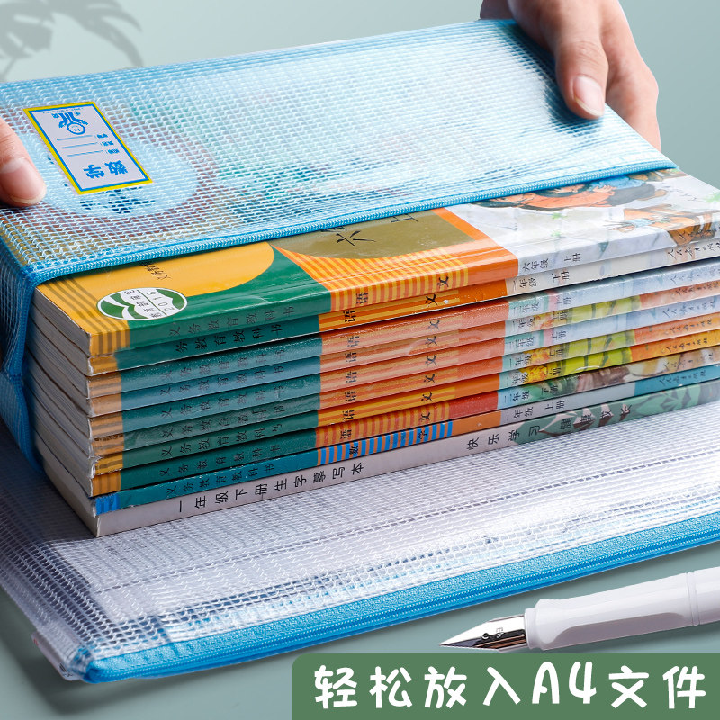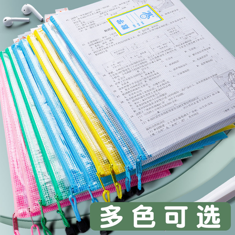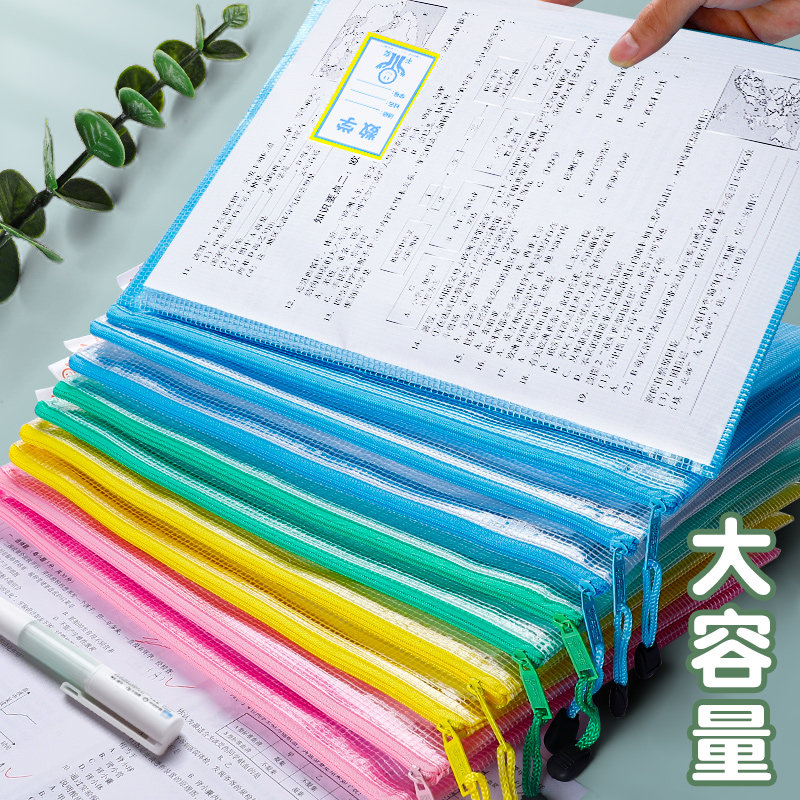 Thickened file bag a4 transparent zipper file bag information bag test paper storage bag cram bag student men and women stationery learning bag Art bag plastic inspection Bill file file receipt invoice