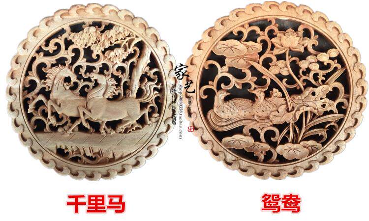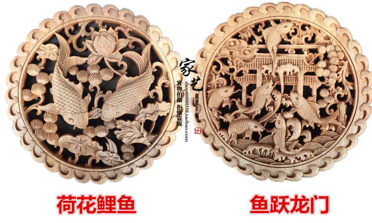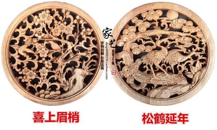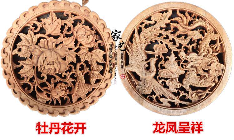 Dongyang wood carving ornaments Solid wood small pendant hollow camphor wood round background wall Entrance lattice living room wall decoration