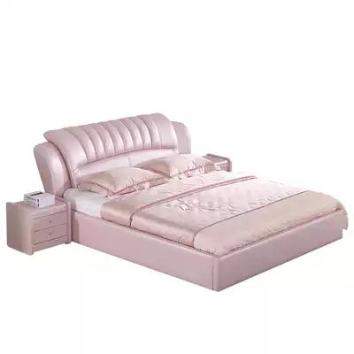 Small apartment leather bed Leather bed Soft bed Leather art bed White cowhide bed Wedding bed 1 8 meters 1 5 modern double bed