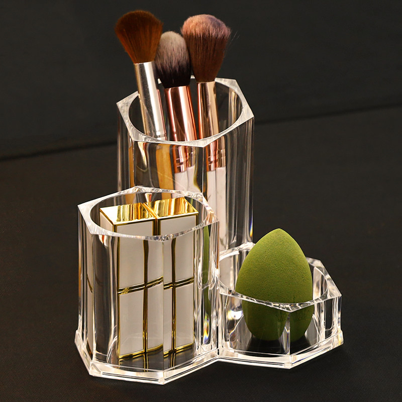 Big three-grid makeup brush box transparent 7-g mouth red makeup brush case Two-g makeup brush case Two-g makeup brush case Pearl pen holder and name sheet box Composition Arc Makeup Brush Box Triple-raised eyebrow pen holder 8 G Small comprehensive exhibition