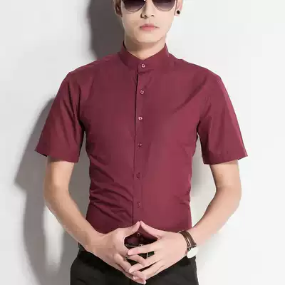 Stand collar short sleeve shirt male slim stand collar youth white shirt business leisure wrinkle resistant round neck summer cotton shirt