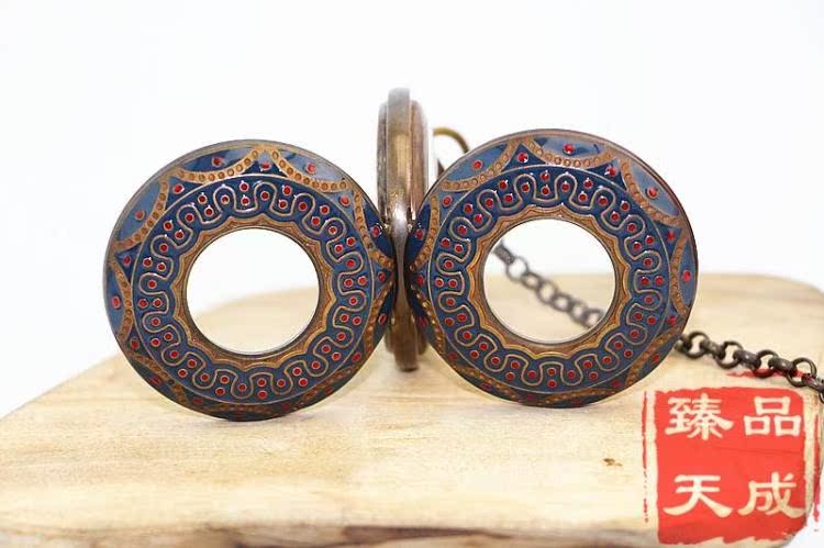 High-end European-style retro cloisonne pure copper double-opening old-fashioned wind-up winding mechanical pocket watch hanging watch props collection