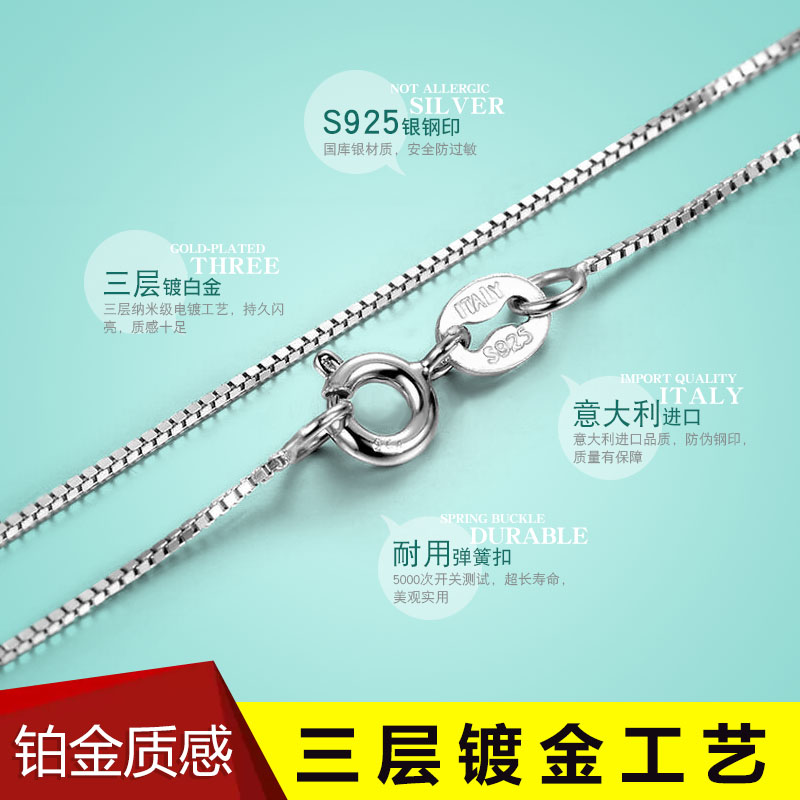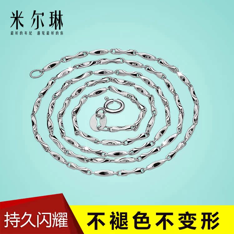 Silver Ornament 925 Pure Silver Necklace Platinum Lock Bone Chain Women's Wool Coat Necklace Length SOUTH KOREA BRIEF TO SEND GIRLFRIEND BIRTHDAY