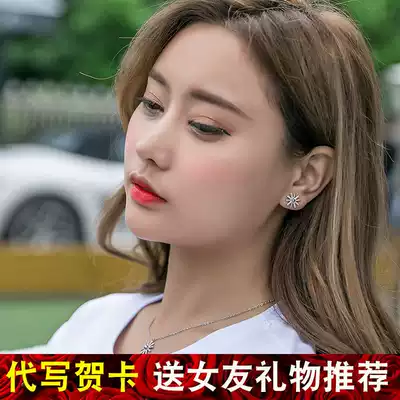 The descendant of the Sun Song Hye Kyo with the same ear needle female sunflower temperament Korean sterling silver earrings simple birthday gift