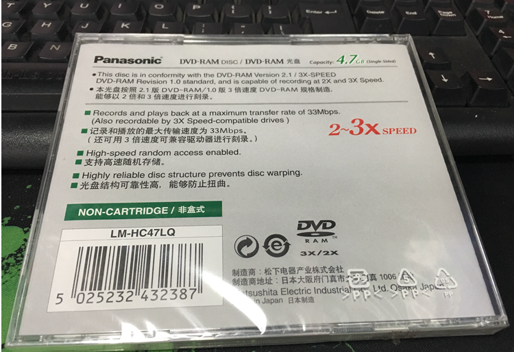DVD-RAM single-sided 4 7G DVD-RAM cassette 9 4G