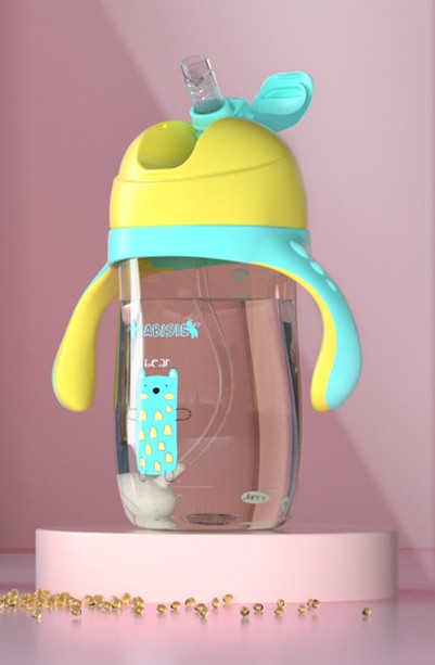 Babisil Belybehin Children's straw cup for more than 6 months Big baby bottle drinking water glass scales resistant to fall home-Taobao