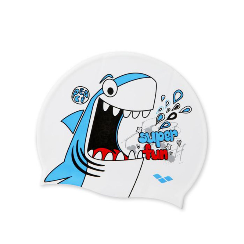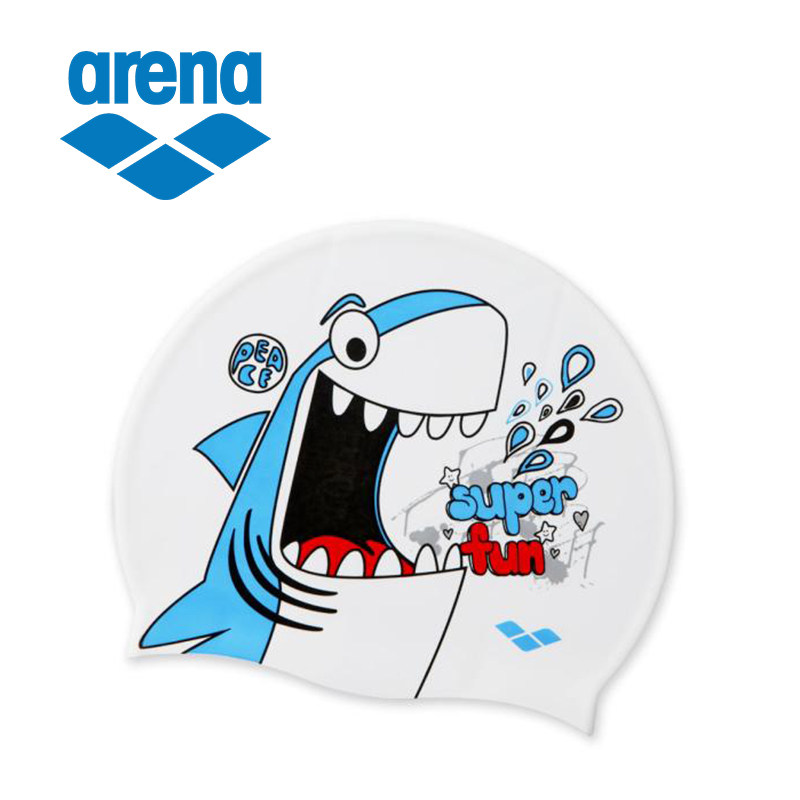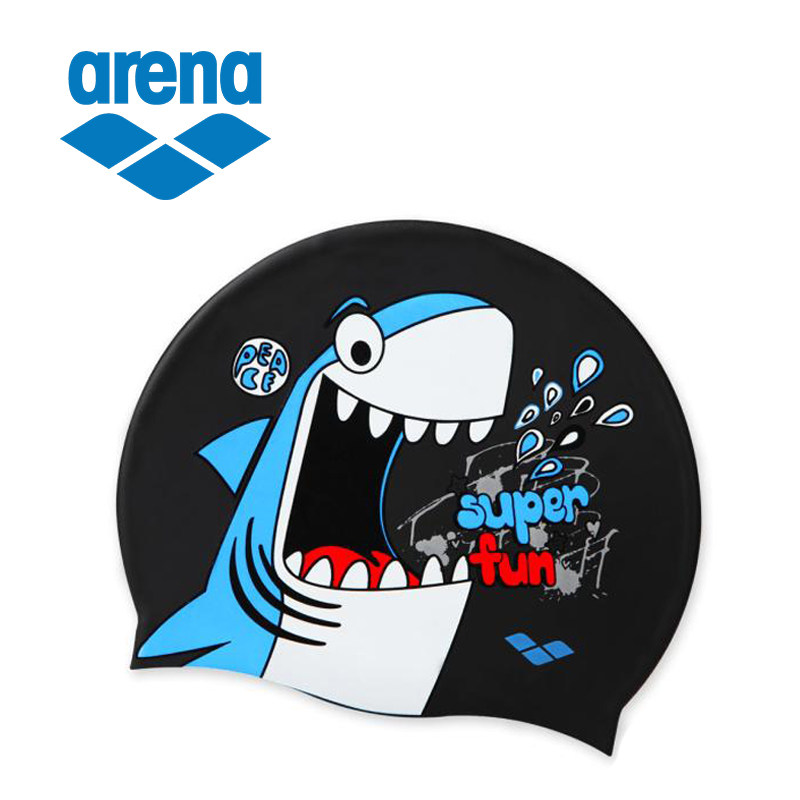 Arena Arena's high - quality silicone male and female long hair swimming cap waterproof cartoon shark green Korea spot