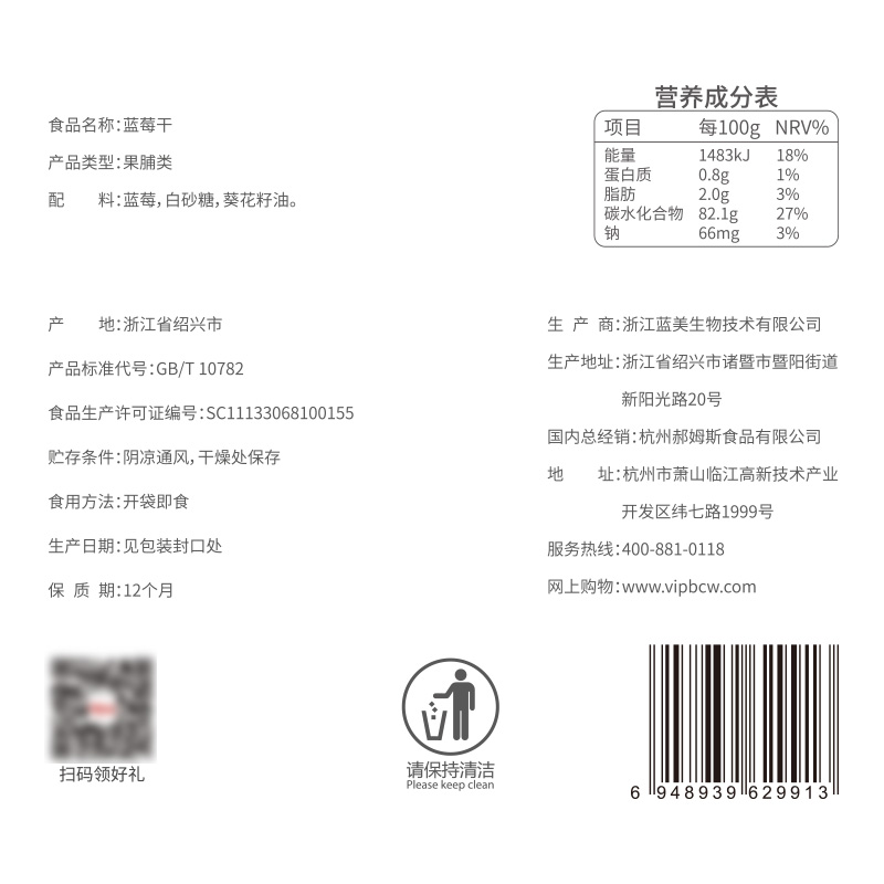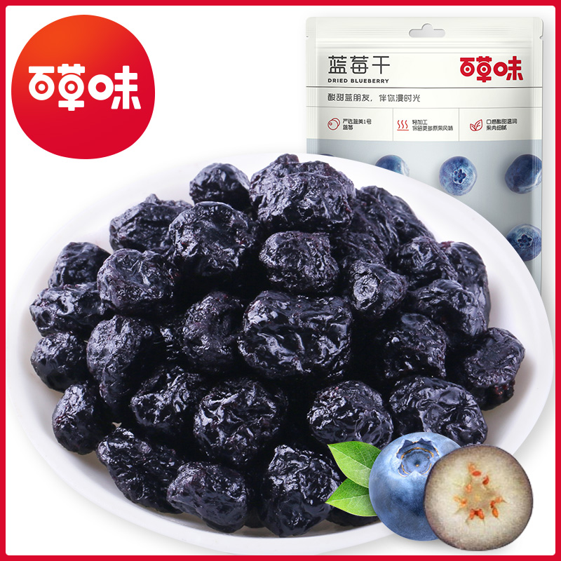 (Baicao Flavor-Dried blueberries 80g)Dried Blue plum fruit Office casual snacks Candied specialty