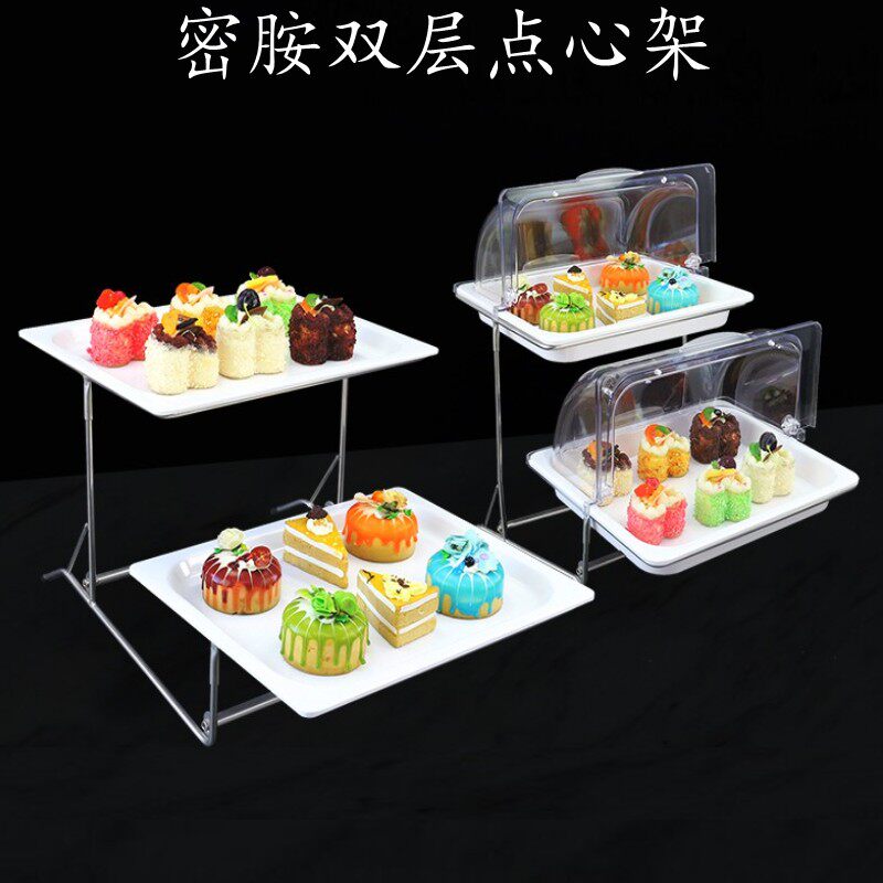 Melamine buffet stainless steel snack rack bread plate fresh-keeping cover rectangular fruit display tray with lid storage