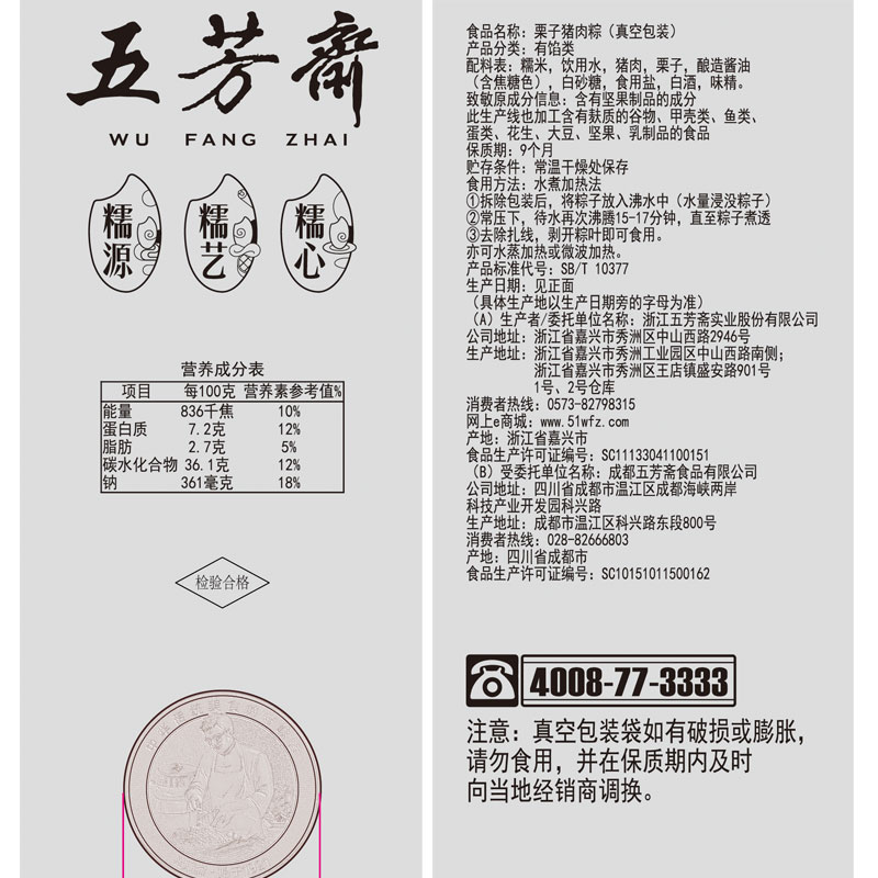 Five Fang Fasting Chestnut Pork Rice Dumplings 140 gr * 2 Drice dumplings Fast Food Breakfast Dragon Boat Festival Jiaxing Glutinous Rice Dumplings
