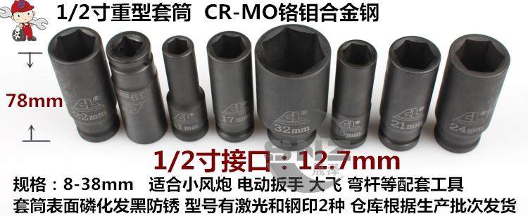 1 2-inch long small wind gun sleeve head heavy-duty thickened pneumatic electric wrench pneumatic set Dafei 8-38mm