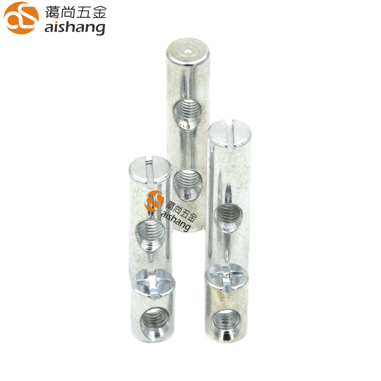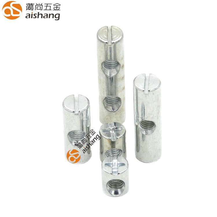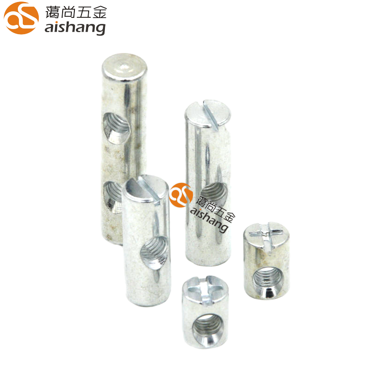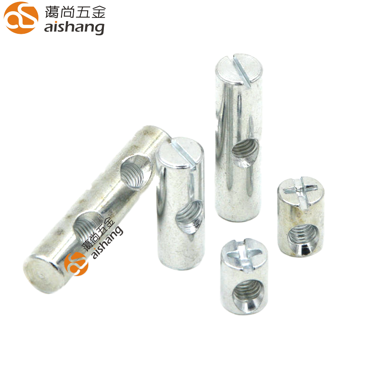 Aishang M6 cylindrical vertical and horizontal hammer head word double-hole nut bookcase children's bed furniture hardware connection accessories