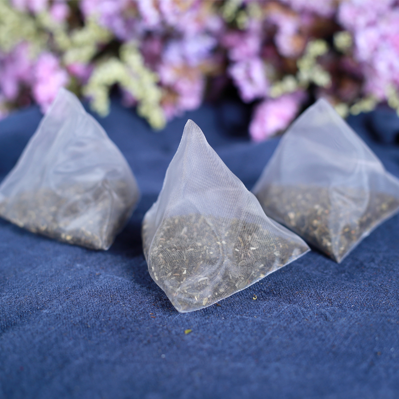 A triangular tea bag