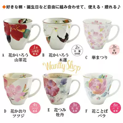 Japan imported beautiful burn and blue flower watercolor ceramic tea cup December flower language birthday Lady mug