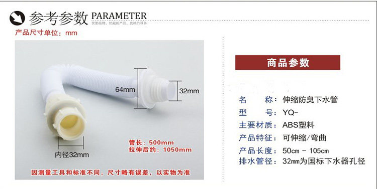Wash basin water tube anti - odor - proof - cosmetic room hands pool counter to water hose Balcony laundry mop pool sewer pipe