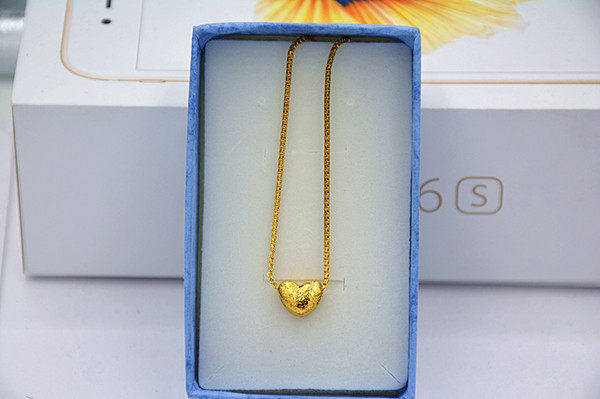 New 3D hard gold wire drawing face gold pendant small peach heart-shaped European coin necklace woman sandgold ornament