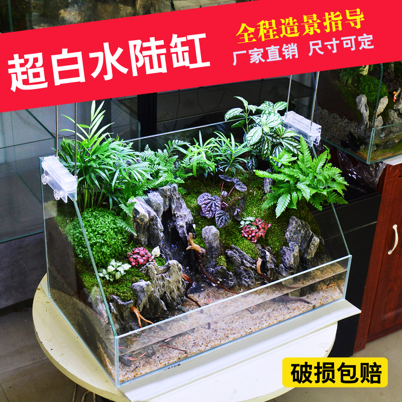 Amphibious Tank Super White Micro Landscape Grass Cylinder Plant Ecological Rainforest Building Fish Tank Package Aquarium Amphibious Fish Tank