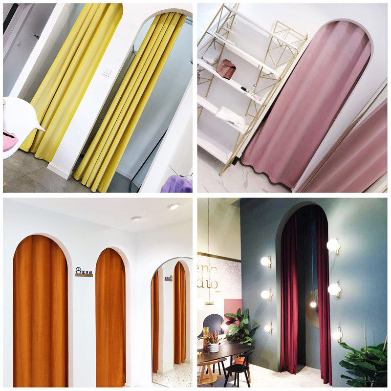 Custom flannel fitting room door curtain Clothing store curtain Women's dressing room simple solid color free perforated partition curtain